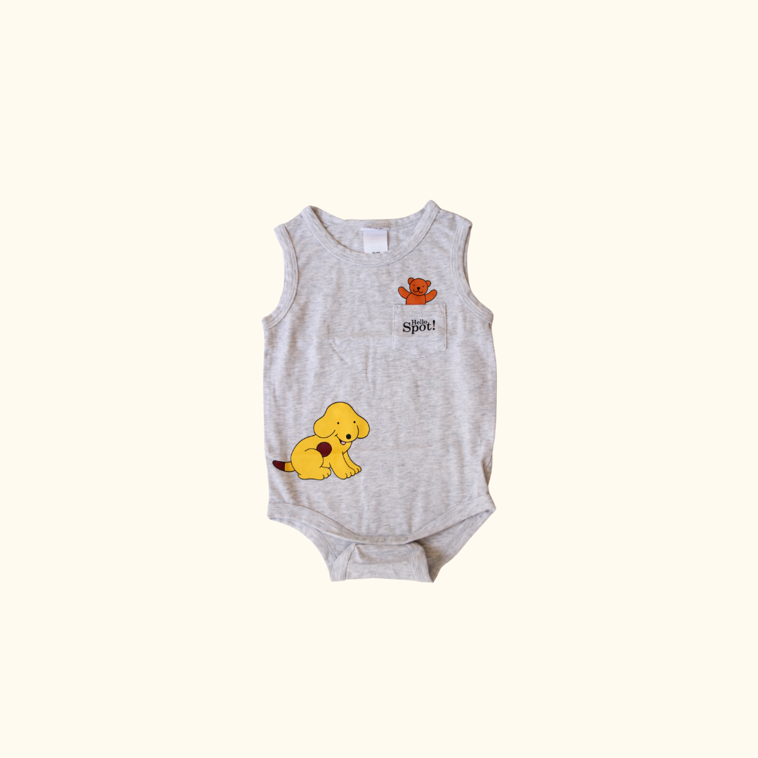 Introducing our Grey Bodysuit featuring Spot the Dog! This unisex, sleeveless bodysuit is perfect for your little one this summer. With its classic grey color and playful Spot the Dog graphic, it's sure to be a hit. Get yours today!
