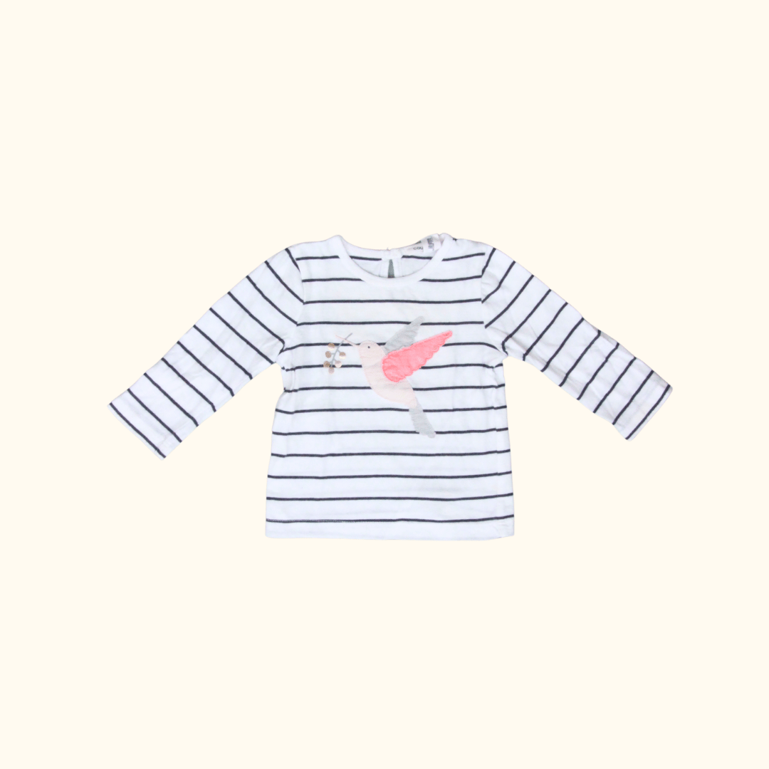 Add some playful charm to your little girl's wardrobe with this classic striped longsleeve t-shirt featuring a quirky bird graphic print. Made from 100% cotton, this t-shirt is perfect for all year wear and will surely become a favourite!
