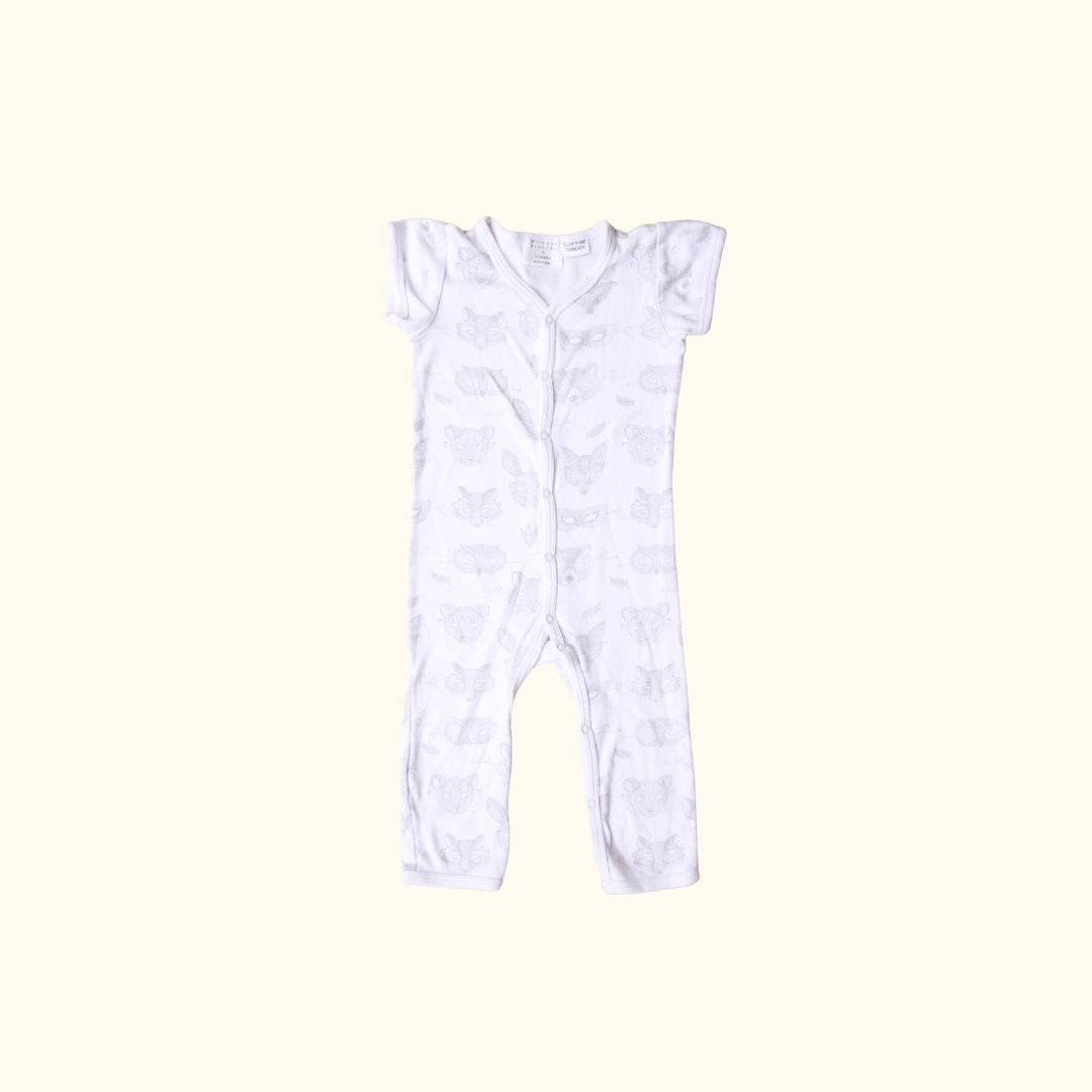 Playful and versatile, this white onesie with grey animal graphics is perfect for your little one all year round. Made with short sleeves and a unisex design, it's the perfect neutral addition to any baby's wardrobe.